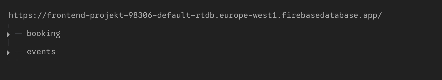 Hele løsningen snakker med Firebase Realtime Database, hvor det kommunikerer med en database i realtime, hvor data ligger i et stort JSON-træ . Så det vil sige, når vi udfylder formularen eller trykker på tilmeld/afmeld-knappen sendes data videre via API-kald, som så gemmes i Firebase.